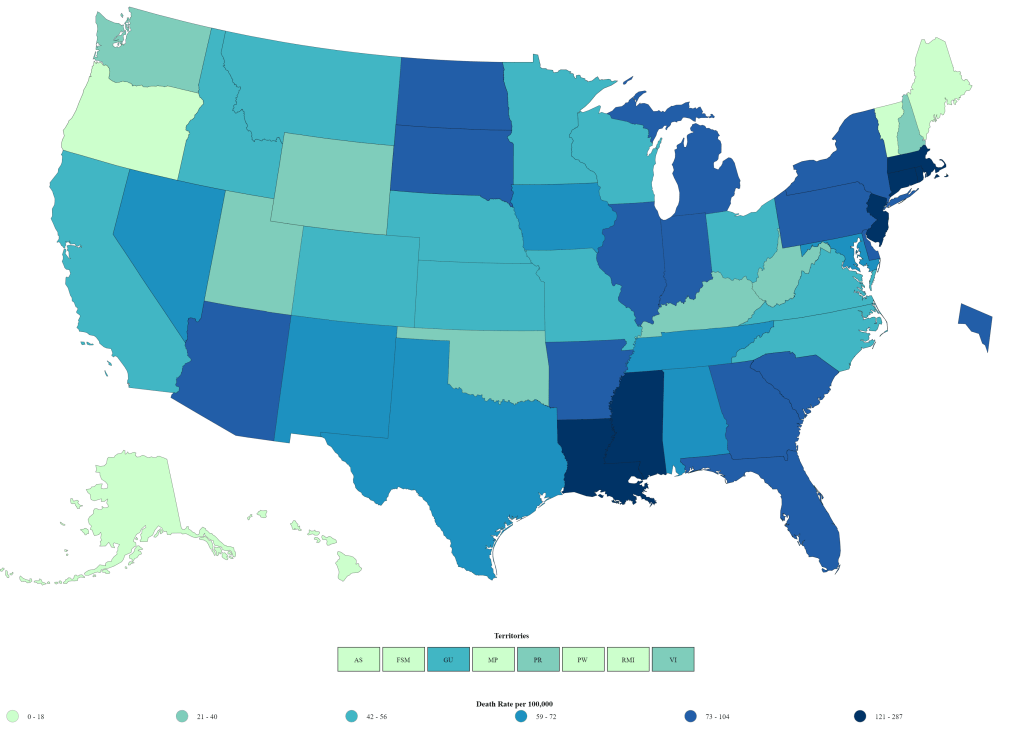 US COVID-19 Case Rate Reported to the CDC in the Last 7 Days, by State/Territory (cases per 100K)